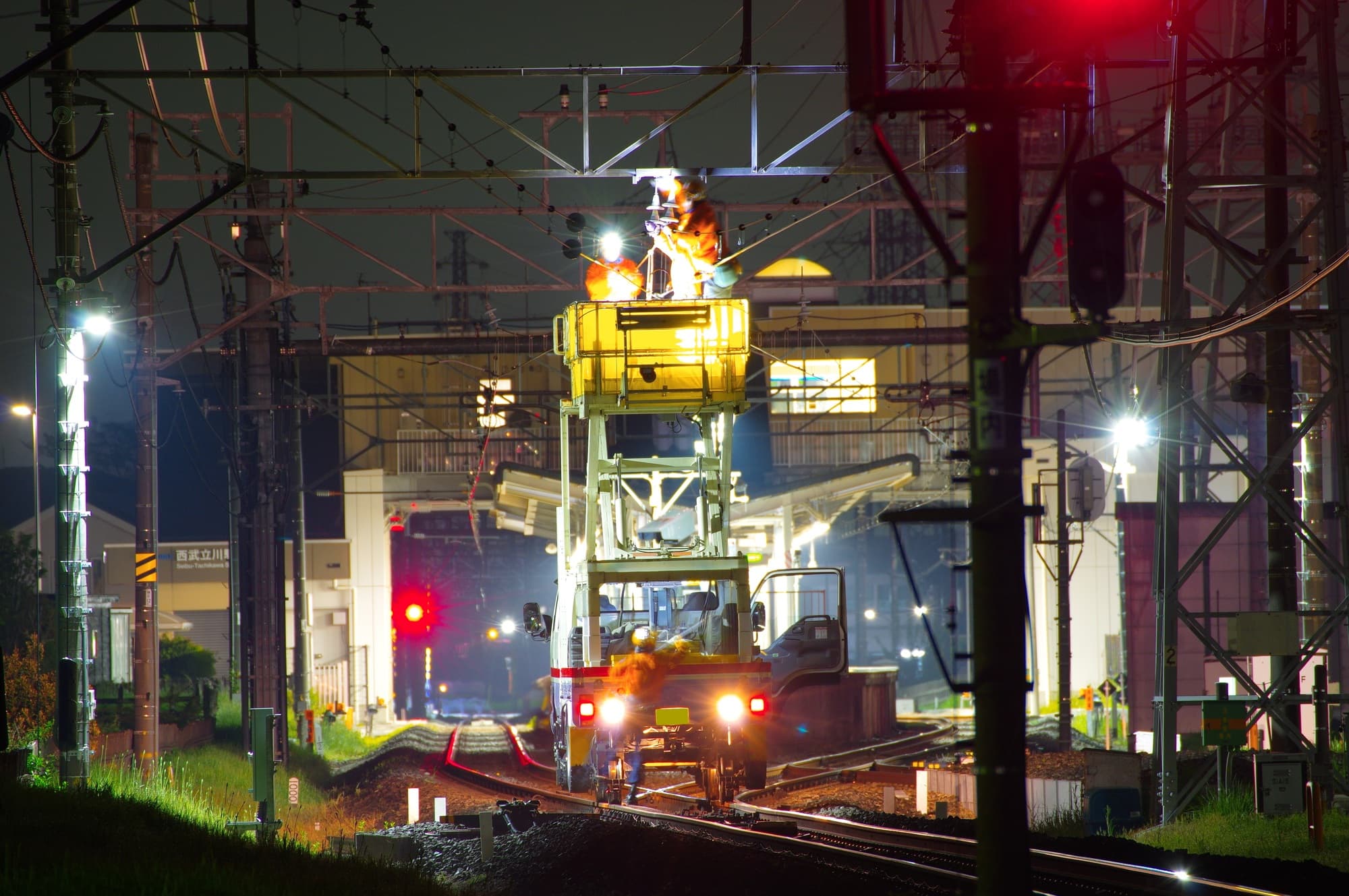駅構内の照明・案内設備・信号機器から、変電設備や架線工事まで、鉄道関連の電気工事を幅広く行っています。 列車運行に支障を与えない夜間工事や、精密な施工が求められる現場でも豊富な実績があります。 高 い安全意識と技術力で、鉄道の安全運行と快適な利用環境を支えています。